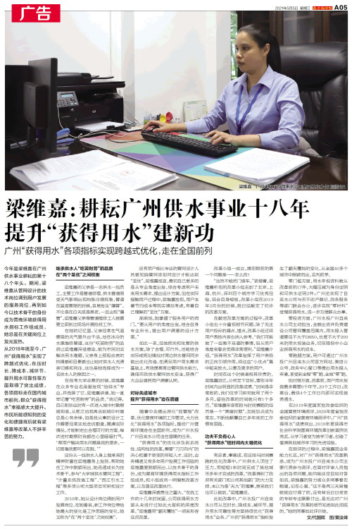 梁维嘉:耕耘广州供水事业十八年 提升“获得用水”建新功