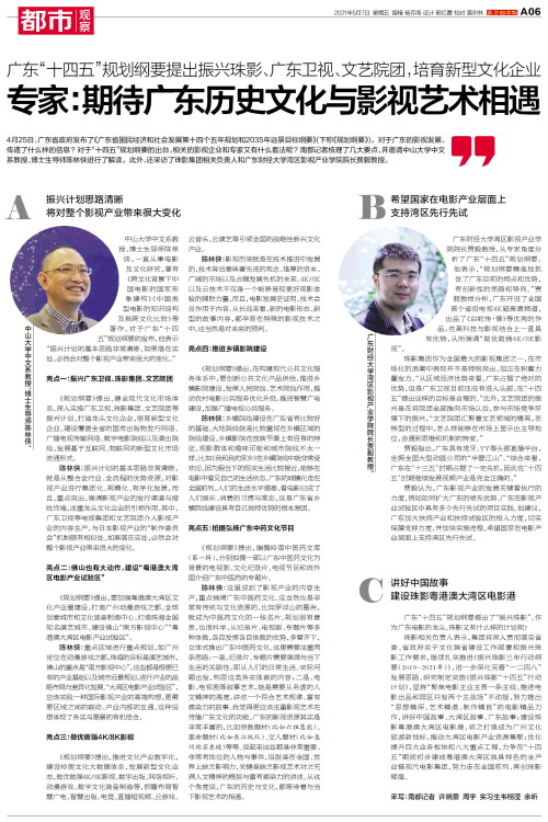 中山大学中文系教授、博士生导师陈林侠。 广东财经大学湾区影视产业学院院长贾毅教授。 4月25日,广东省政府发布了《广东省国民经济和社会发展