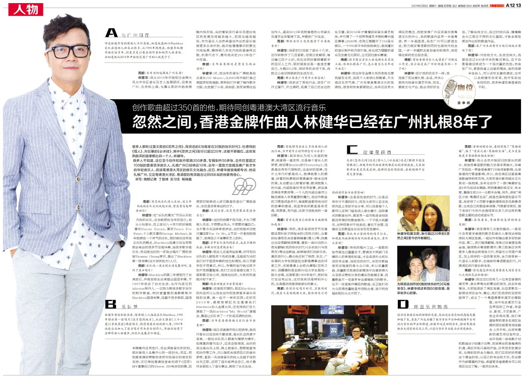 忽然之间,香港金牌作曲人林健华已经在广州扎根8年了