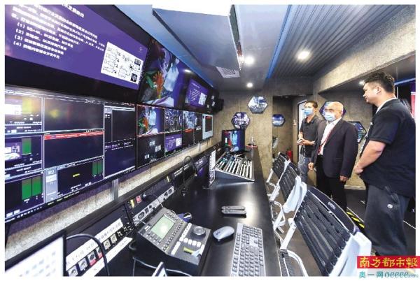 转播车内集成了整套4K/8K超高清转播制作系统和设备。 南都记者 夏嘉雯 摄