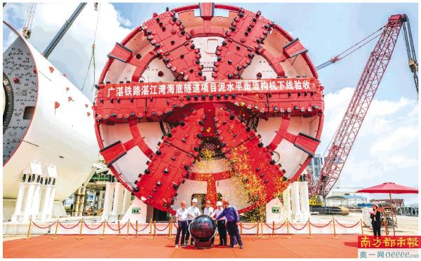 “永兴号”盾构机日前在江门顺利下线,即将运往广湛高铁湛江湾海底隧道现场投入使用,标志着广湛高铁即将开启穿海之旅,阳江、茂名、湛江等粤西三地携手跨入高铁时代更近一步,该隧道是我国目前独头掘进最长的大直径穿海高铁盾构隧道。 通讯员 刘福昌 张朋飞 摄