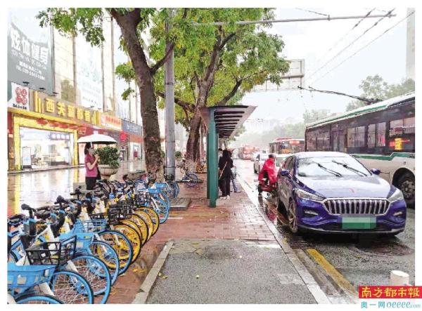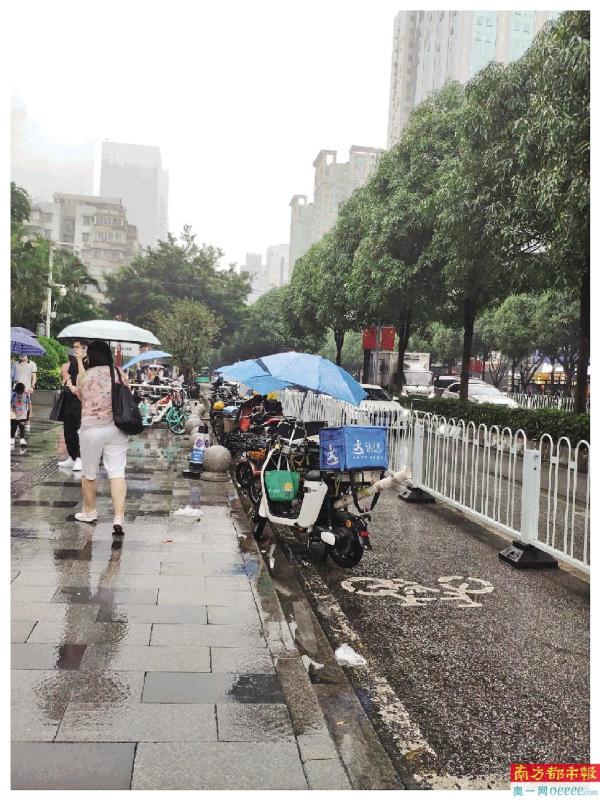 体育西路,大量电动自行车停在非机动车道上,影响正常通行。