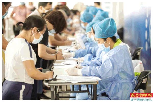 黄埔区青年志愿者在黄埔体育中心协助新冠疫苗接种专项行动。 通讯员供图