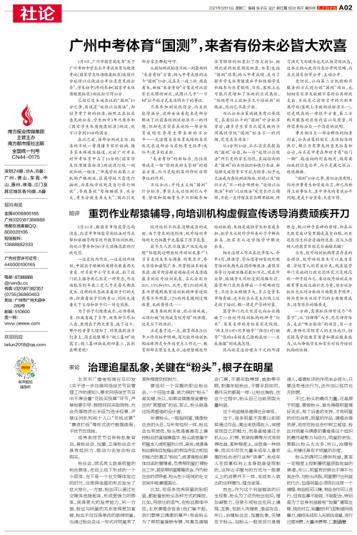 5月9日,广州市教育局发布“关于广州市初中学业水平考试体育与健康考试《国家学生体质健康标准》成绩计分延续以往做法公开征求意见的公告”,学生初中3年均参加《国家学生体质健康标准》测试拟可得10分。