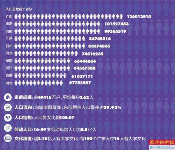 我国仍是世界第一人口大国,人口约占全球18% 广东1.26亿,10年增加人口超2100万,增量全国第一