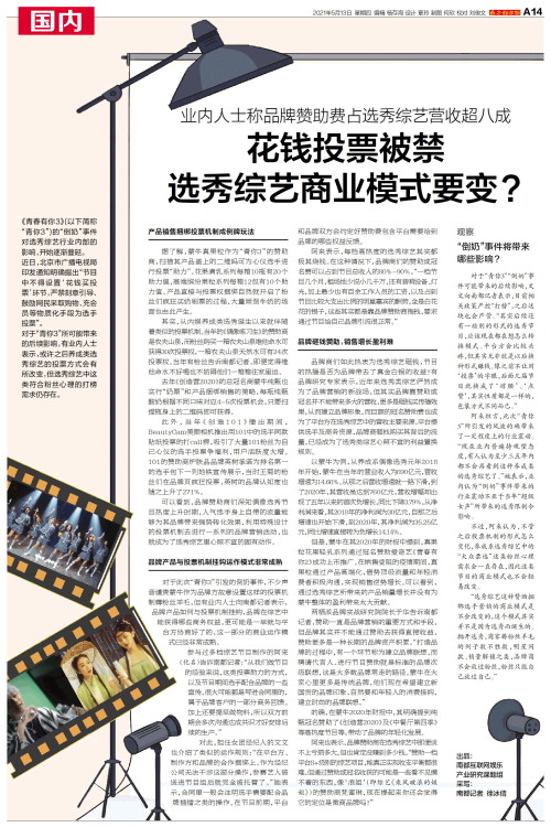 对于此次“青你3”引发的倒奶事件,不少声音谴责蒙牛作为品牌方故意设置这样的投票机制薅粉丝羊毛,但有业内人士向南都记者表示,品牌产品如何与投票机制挂钩,品牌在综艺中能获得哪些商务权益,更可能是一早就与平台方协商好了的,这一部分的商业运作模式已经非常成熟。