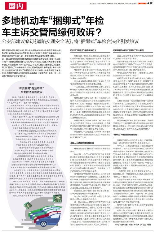 多地机动车“捆绑式”年检 车主诉交管局缘何败诉?