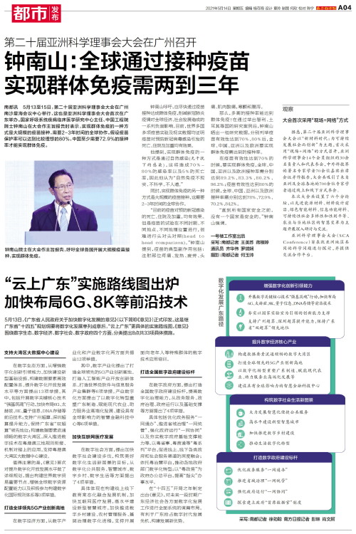 南都讯 5月13至15日,第二十届亚洲科学理事会大会在广州南沙星海会议中心举行,这也是亚洲科学理事会大会首次在广东举办。国家呼吸系统疾病临床医学研究中心主任、中国工程院院士钟南山在大会作主旨报告时