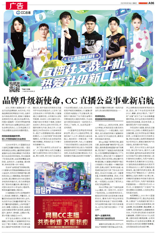 近日,网易CC直播迎来了一次全方位的品牌焕新。本次升级,不仅是品牌视觉和界面设计升级,也是平台内容品质的升级,更是CC直播未来使命的升级。通过此次品牌升级,网易CC直播再一次向外界传递并强调了其对