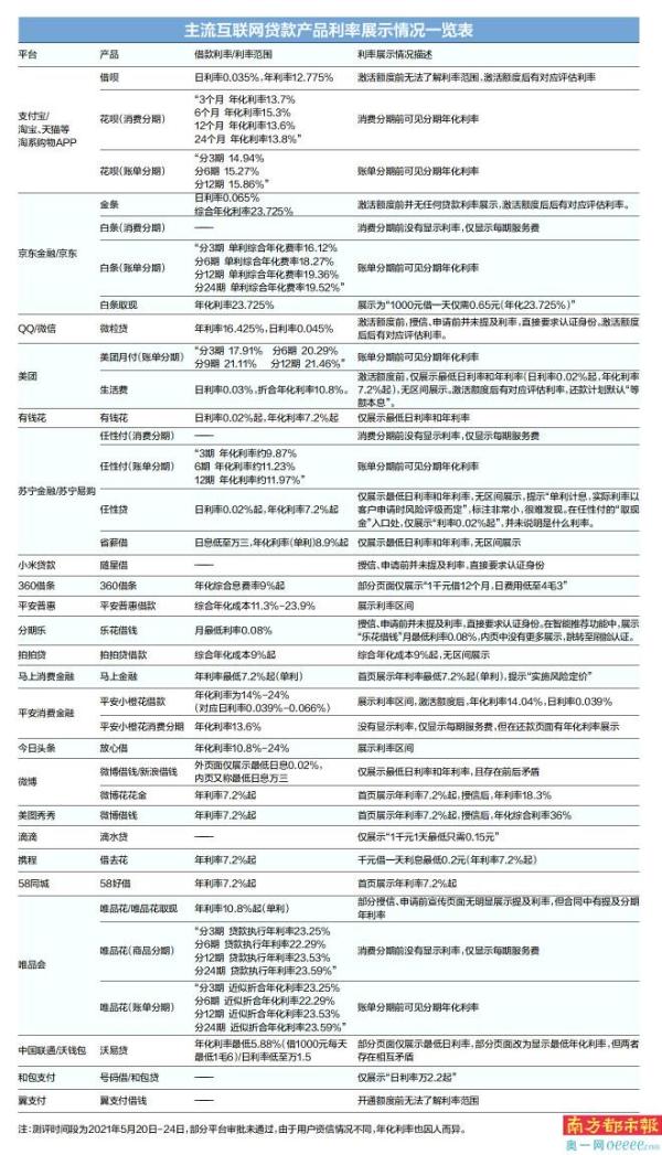 近年,各互联网平台推出各种花样的借贷产品来适应大众消费需求。从测评来看,各平台的计息方法可谓是五花八门,让消费者摸不着头脑,有不少互联网平台贷款利率展示都有误导性。