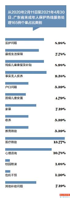今年6月1日起施行的新修订的《中华人民共和国未成年人保护法》增设了“政府保护”专章,强调要开通未成年人保护热线,畅通未成年人保护求助渠道。2020年2月11日,在广东省民政厅指导下,省少年儿童救助保护中心开通了“护童之声”广东省困境儿童24小时服务热线(后更名为“广东省未成年人保护热线”,以下简称“省级热线”)0769-87127138(后增设12349-1),整合省有关部门、各地市未成年人救助保护热线等救助资源。截至2021年4月30日,热线服务各类求助电话共1081个,处理个案165例,涉及监护问题、困境儿童安置等问题,“件件有着落,事事有回应”。
