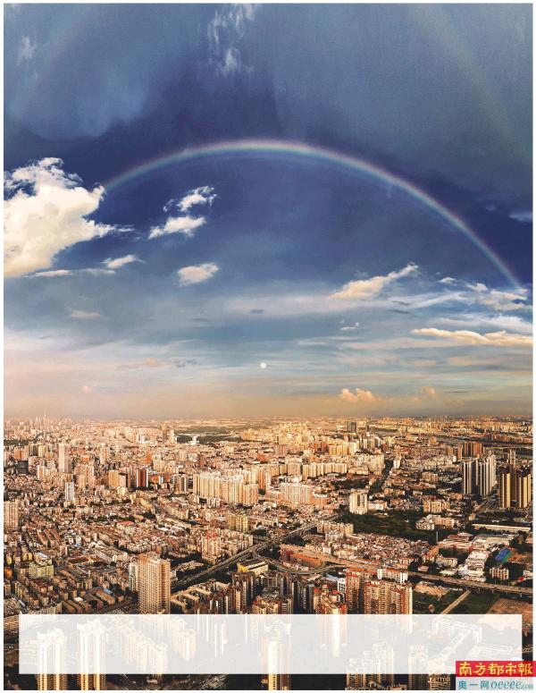 昨日傍晚,广州一场暴雨困住不少下班族,骤雨稍歇,抬头望天却惊喜地发现雨后有彩虹。广州市气象灾害应急指挥部昨日17时35分起启动气象灾害(雷雨大风)Ⅳ级应急响应,越秀区、天河区等多区暴雨黄色预警信号生效。 陈国亨 摄