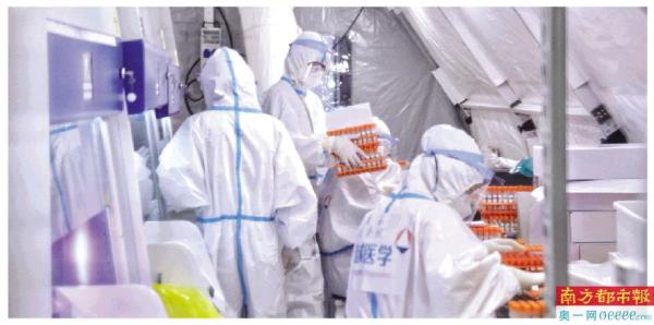 昨日,多方联合共建的猎鹰号方舱实验室,在广州体育馆首次投入使用,将提高广州市及周边地区的核酸检测能力。 南都记者 黎湛均 摄