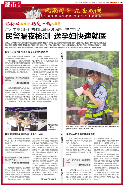居民为民警送上食物。受访者供图 前日下午,广州丽江花园检测点,南浦岛在暴雨中启动第二轮全民核酸检测,民警现场指引协调。 南都记者 谭伟山 摄 6月2日,广