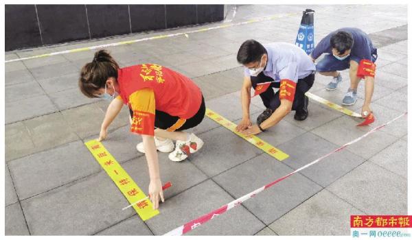 “请各位群众佩戴好口罩,注意保持一米距离,并提前打开‘葵花码’……”在从化区太平镇大规模采样点扫码测温区,身穿红马甲的党员志愿者们拿着大喇叭反复地提醒群众。几小时下来,一遍又一遍地说着同一句话,他们的声音已显得有些沙哑。
