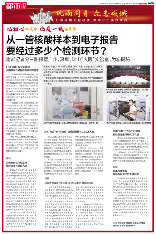 深圳“火眼”实验室里,工作人员忙碌的身影。南都记者 刘有志 摄 6月5日,经连夜建设,仅用10小时建成的广州“火眼”实验室,落地番禺。南都记者 王道斌 摄