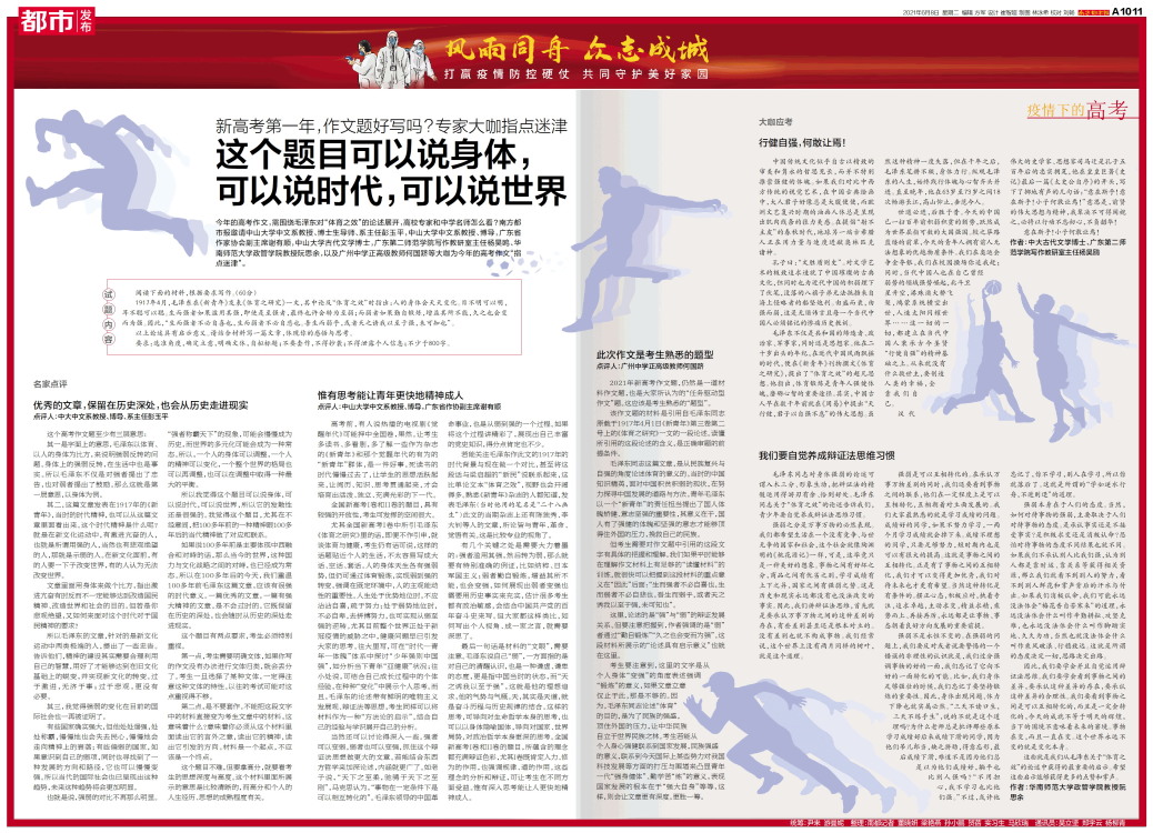 疫情下的高考 今年的高考作文,需围绕毛泽东对“体育之效”的论述展开,高校专家和中学名师怎么看?南方都市报邀请中山大学中文系教授、博士生导师、系主任彭玉平,中山大学中文系教授、博