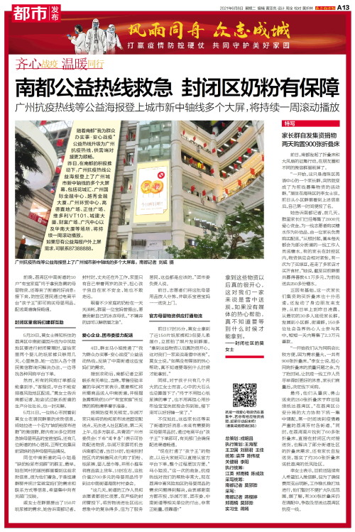 广州抗疫热线等公益海报登上了广州城市新中轴线的多个大屏幕。 南都记者 刘威 摄 抗疫一线爱心物资仍在募集中,若你有相应物资捐赠,赶紧行动起来吧! (募集或捐赠请扫码)