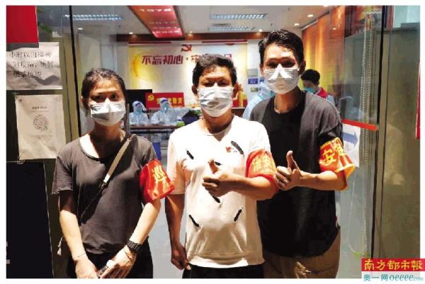 “爸爸,你怎么也来了?”正在核酸检测现场做志愿者的越秀区大塘街芳草社区党员黎景欣,被同样前来支援的儿子、儿媳妇认出。