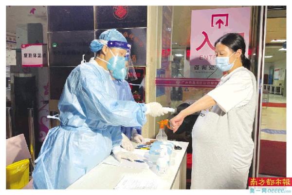凌晨2时,的士停稳在荔湾区妇幼保健院门口。经提前联络,妇幼保健院的医护在门口为准妈妈卫女士测量体温,查验其核酸检测结果,一旁等待的妇产科护士长随后带卫女士和其丈夫到急诊室。