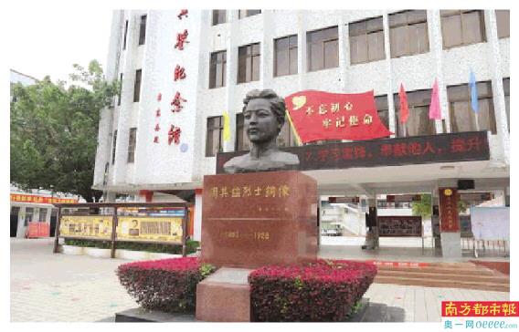 广宁周其鉴红军中学内周其鉴铜像。