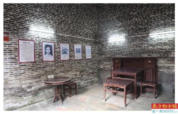 穿过新楼牌坊,沿着青砖村道,记者走到古建筑群中央一处古朴的民居,这里便是周其鉴故居。厅堂侧墙上,悬挂着周其鉴生平事迹图片,生动还原了大革命时期轰轰烈烈的农民运动。