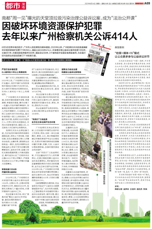 因破坏环境资源保护犯罪 去年以来广州检察机关公诉414人