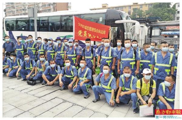 6月1日,越秀区城市管理和综合执法局向区环卫保洁所全体职工发出倡议书,组建越秀区环卫先锋队支援荔湾区白鹤洞街道环境卫生保洁,倡议书一经发出,100多名环卫工人踊跃报名。考虑到身体状况、年龄等各种因素,最终选定周运财等43名环卫工人奔赴白鹤洞街。