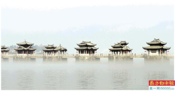 潮州,浓雾弥漫中的广济桥。