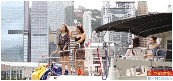 6月12日,游客在香港维多利亚港的游船上游览。 新华社发