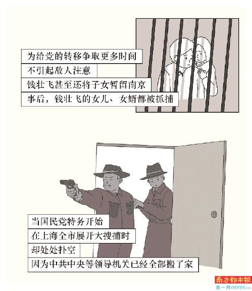 第二早晨,他若无其事将这批特急密电当面交给徐恩曾。然后从容不迫离开大本营,返回上海。为给党的转移争取更多时间,不引起敌人注意,钱壮飞决定将子女暂留南京。事后,钱壮飞的女儿、女婿都被抓捕。