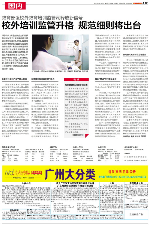 校外培训监管升格 规范细则将出台