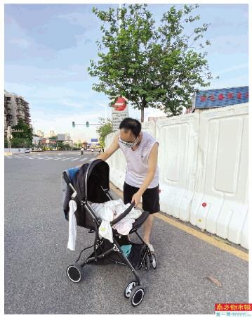 花蕾路,伍先生带着4个月的宝宝准备去采购。