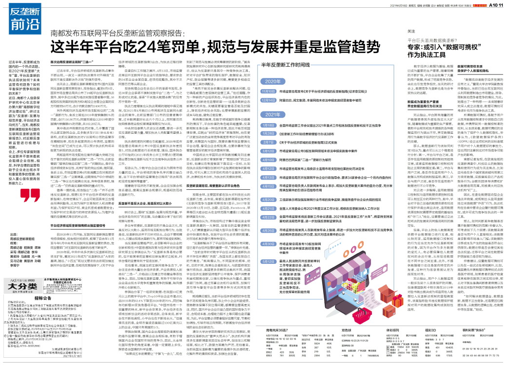 过去半年,反垄断成为国内的一个热点话题。在2021年反垄断“大年”里,平台反垄断的执法现状如何?未来监管有何趋势?如何平衡保护竞争和创新的关系?近日,南都个人信息保护研究中心在北京举办第六期“南都
