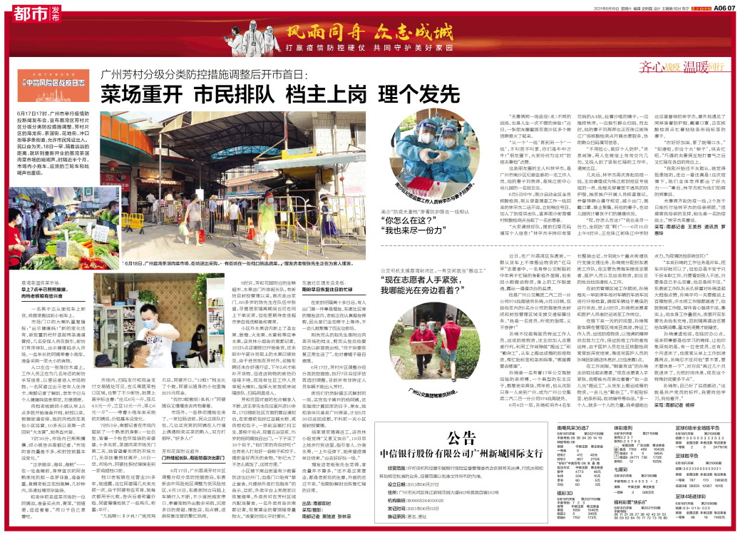 6月17日17时,广州市举行疫情防控新闻发布会,宣布荔湾区芳村片区分级分类防控措施调整,芳村片区的海龙街、茶滘街、花地街、冲口街等多条街道,允许市民凭证出入。