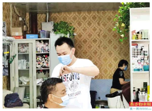 在家封闭隔离十多日后,有人出门第一件事是理发。东漖社区旁的理发店内,老板正在认真推发挥剪,回头客们坐在椅子上等待,不一会儿就聚集了四五位街坊。