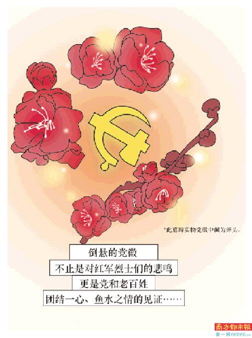 记者曾到现场凭吊。这里的一草一木,都让人感怀。其中,一幅倒悬的党徽更印记着革命志笃、战友情深。
