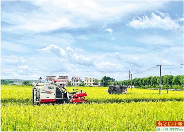 盛夏七月稻飘香,又到了早稻成熟的时节。在江门台山市乡间田野上,呈现出一片金黄色的喜人景象。在白沙镇的稻田里,沉甸甸的稻穗压弯了禾秆,农民们开着机器忙碌地收割,饱满的稻谷堆积成金色小山,构成了一幅幅美妙的“丰收图”。从6月初起,台山市各镇陆续开始早造水稻收割,目前全市收割进度已超过六成,预计7月中下旬将全部收割完毕。