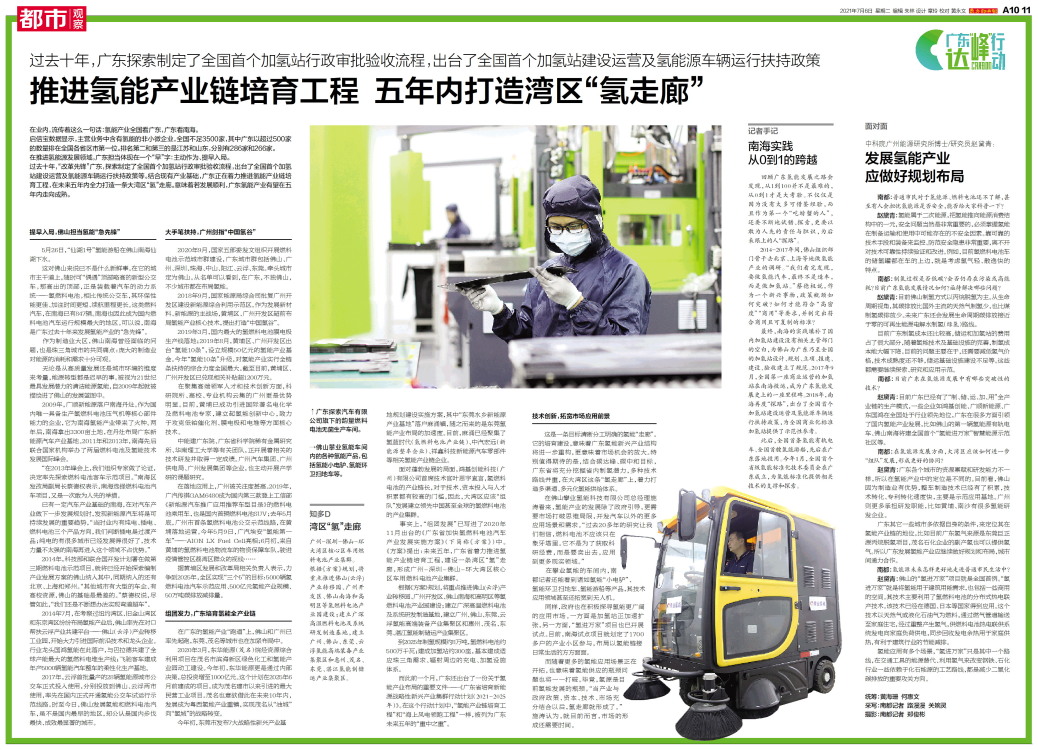推进氢能产业链培育工程 五年内打造湾区“氢走廊”