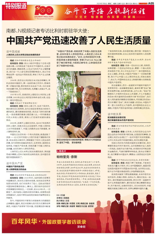 人物名片 帕特里克·奈斯 年逾七旬的帕特里克·奈斯已在中国生活了二十余年。1997年,他来到中国担任比利时驻上海总领事,后任比利时驻香港总领事。2009年至2013年,他出任比利时驻华大使。他