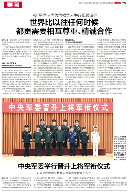 新华社电 国家主席习近平5日晚在北京同法国总统马克龙、德国总理默克尔举行视频峰会。 习近平指出,当前,全球疫情形势依然严峻,经济复苏前景不明。世界比以往任何时候都更需要相互尊重、精诚合作,而不是
