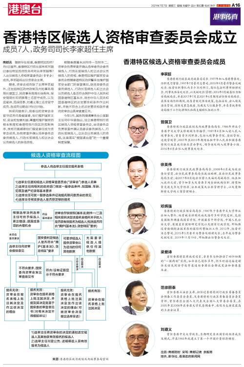香港特区候选人资格审查委员会成立