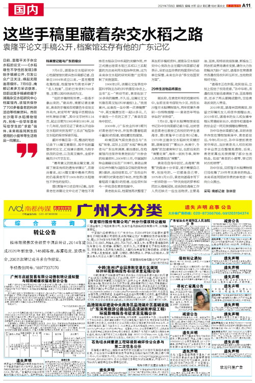 袁老故去后,档案馆再次整理了其生前手稿和资料。湖南杂交水稻研究中心党政办主任魏科向南都记者表示,目前这些珍贵的档案资料仍由单位保管,未来也许会“移交给国家方面”。