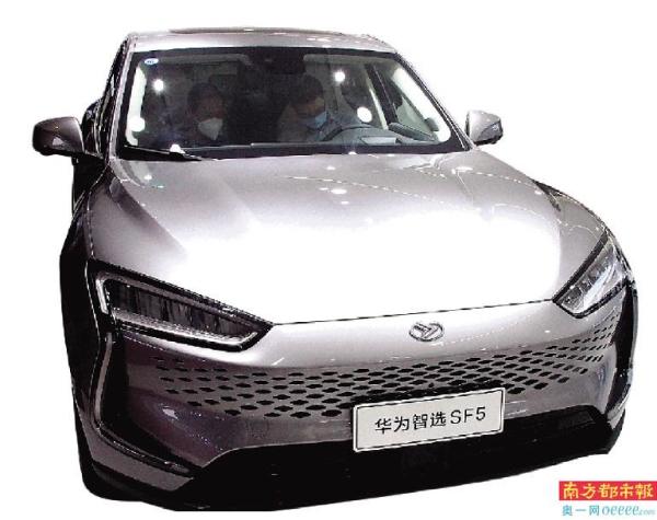 4月28日,国产品牌赛力斯与华为合作的智能电动车亮相上海车展。 新华社图片