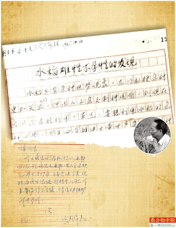 日前,袁隆平关于杂交水稻的论文——《水稻雄性不孕性的发现》原始手稿被公开,引发广泛关注。7月6日,南都记者多方采访获悉,目前这篇手稿被收藏于湖南杂交水稻研究中心档案馆内,该馆共保存了700多卷袁老的科研活动等档案资料,见证了袁老从开启杂交水稻研究到发明“三系法”籼型杂交水稻的艰辛探索历程。 受访者供图
