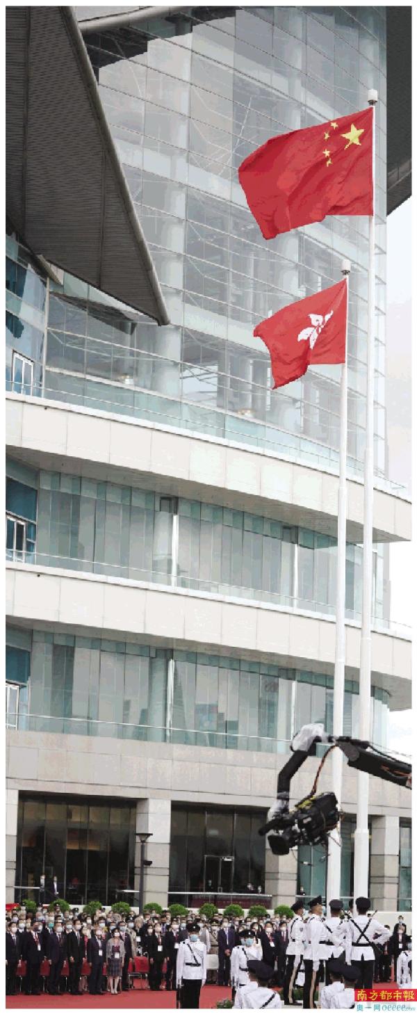 7月1日,香港特别行政区政府在金紫荆广场举行升旗仪式,庆祝香港特别行政区成立二十四周年。