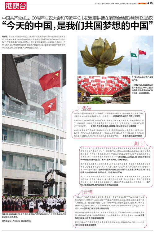 南都讯 连日来,中国共产党成立100周年庆祝大会和中共中央总书记、国家主席、中央军委主席习近平的重要讲话,在港澳台地区持续引发各界强烈反响和热议。在香港和澳门地区,各界人士自发组织观看庆祝大会直播