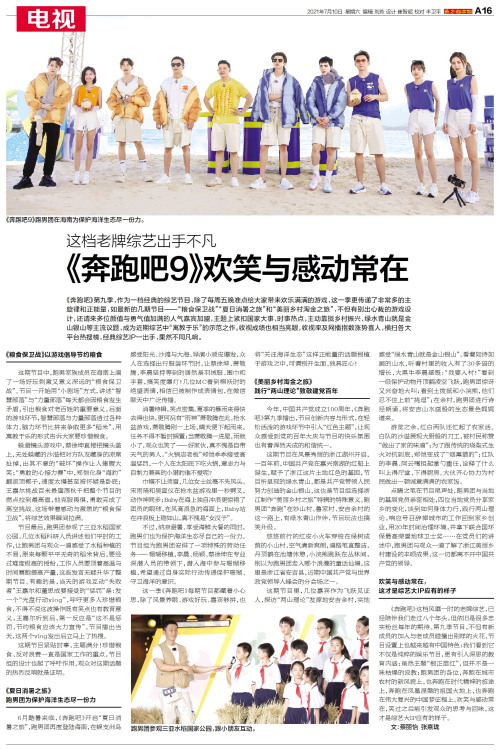 《奔跑吧》第九季,作为一档经典的综艺节目,除了每周五晚准点给大家带来欢乐满满的游戏,这一季更传递了非常多的主旋律和正能量,如最新的几期节目——“粮食保卫战”“夏日消暑之旅”和“美丽乡村淘金之旅”,不但有别出心裁的游戏设计,还请来多位颜值与勇气值加满的人气嘉宾加盟,主题上紧扣国家大事、时事热点,主动靠拢乡村振兴、绿水青山就是金山银山等主流议题,成为近期综艺中“寓教于乐”的示范之作。收视成绩也相当亮眼,收视率及网播指数涨势喜人,横扫各大平台热搜榜,经典综艺IP一出手,果然不同凡响。