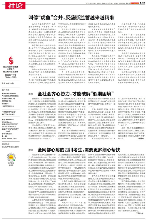 来论 暑假到来,日前教育部印发了《关于支持探索开展暑期托管服务的通知》,引导支持有条件的地方积极探索开展暑期托管工作。通知一出,叫好有之,反对有之,担心也有之。笔者认为,探索假期托管,解决人民群