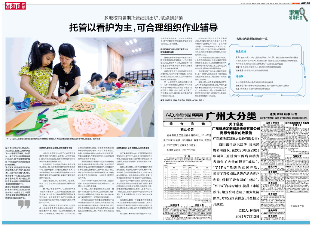 7月9日,教育部发布《关于支持探索开展暑期托管服务的通知》,其中提出,地方教育部门要从本地实际出发,鼓励有条件的学校积极承担学生暑期托管服务工作。